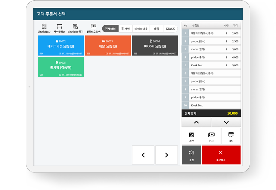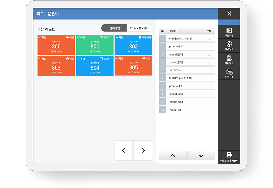 - 注文別(KIOSK,POS、スマートオーダー、テーブルオーダーの進捗状況管理