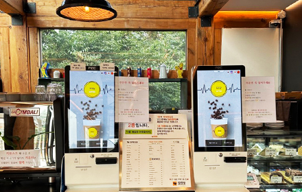 H/W : Kiosk T series (T4)S/W : UP KIOSK Type of business : CafeLocation : Korea
